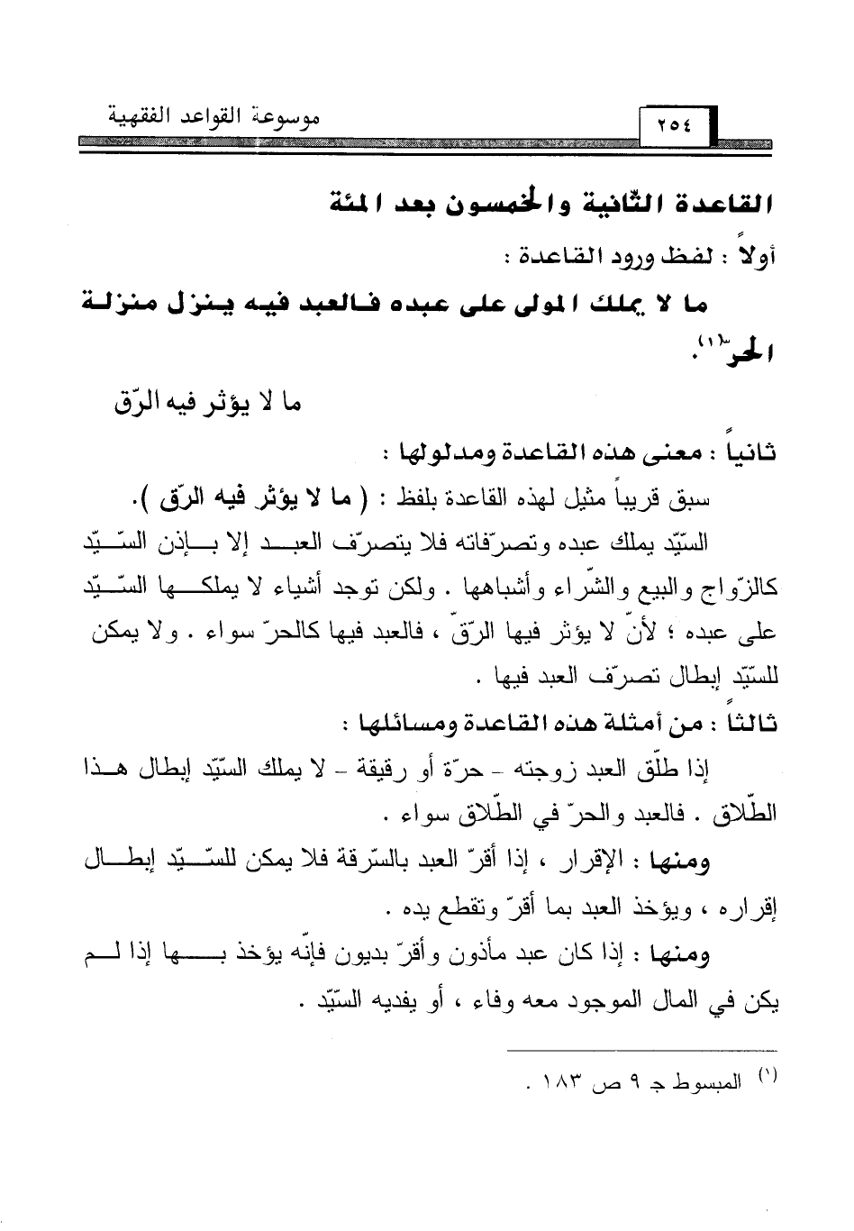 القاعدة الثّانية والخمسون بعد المئة [ما لا يؤثر فيه الرّق]