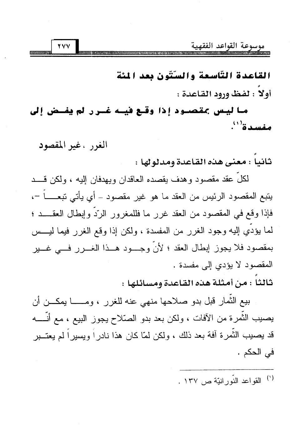القاعدة التّاسعة والسّتّون بعد المئة [الغرر، غير المقصود]
