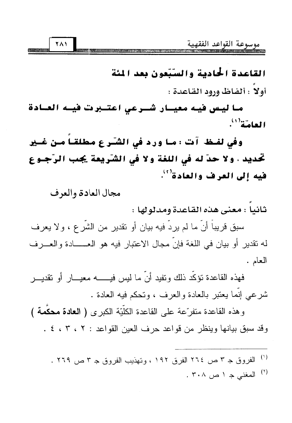القاعدة الحادية والسّبّعون بعد المئة [مجال العادة والعرف]