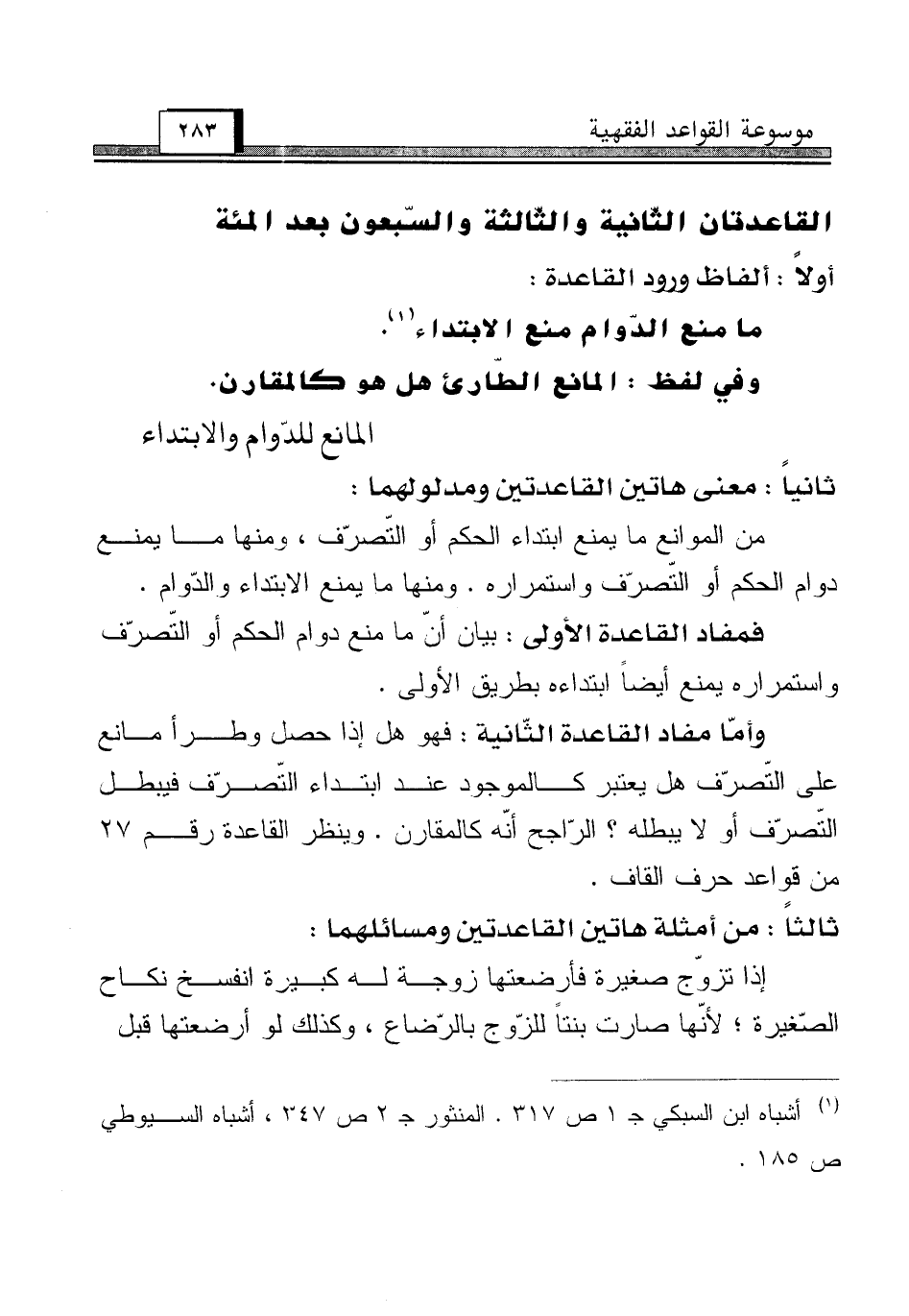 (¬1) أشباه ابن السبكي جـ 1 ص 317. المنثور جـ 2 ص 347، أشباه السيوطي ص 185.