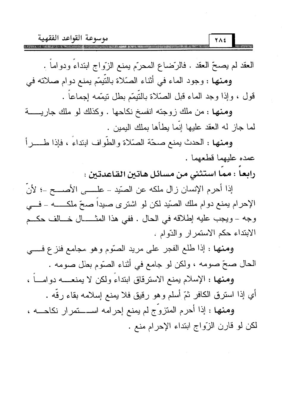 رابعاً: ممّا استثني من مسائل هاتين القاعدتين: