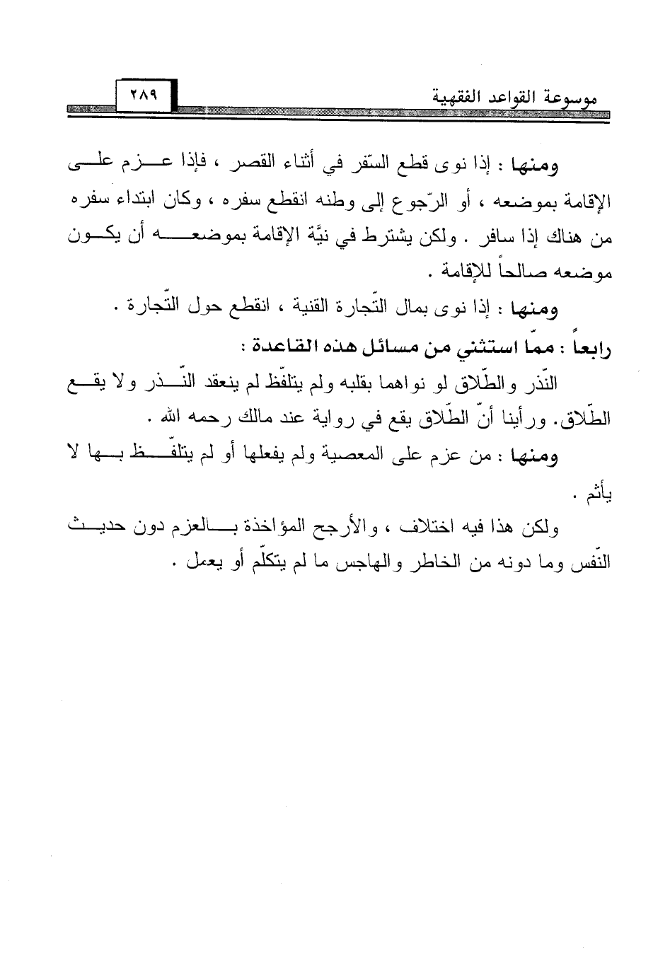 رابعاً: ممّا استثني من مسائل هذه القاعدة: