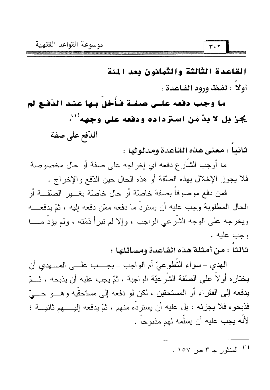 القاعدة الثّالثة والثّمانون بعد المئة [الدّفع على صفة]