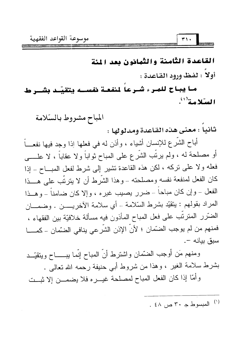 القاعدة الثّامنة والثّمانون بعد المئة [المباح مشروط بالسّلامة]