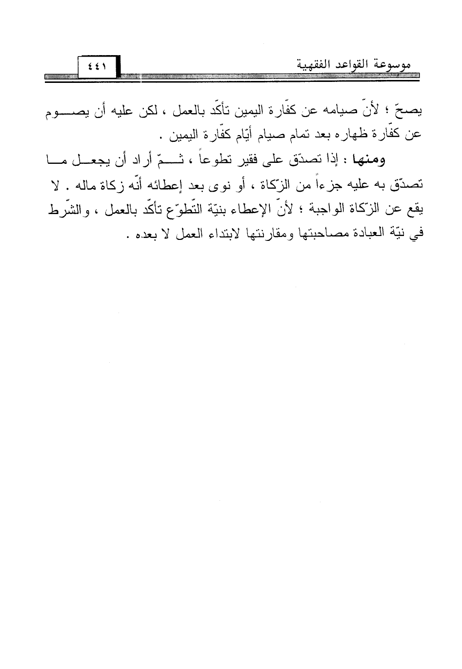 ومنها: إذا تصدّق على فقير تطوعاً، ثمّ أراد أن يجعل ما تصدّق به عليه جزءاً من الزّكاة، أو نوى بعد إعطائه أنّه زكاة ماله. لا يقع على الزّكاة الواجبة؛ لأنّ الإعطاء بنيّة التّطوّع تأكّد بالعمل، والشّرط في نيّة العبادة مصاحبتها ومقارنتها لابتداء العمل لا بعده.