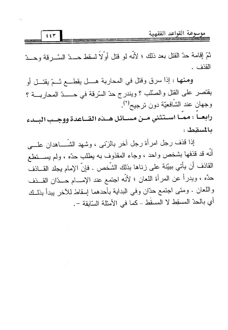 رابعاً: ممّا استثني من مسائل هذه القاعدة ووجب البدء بالمسقِط: