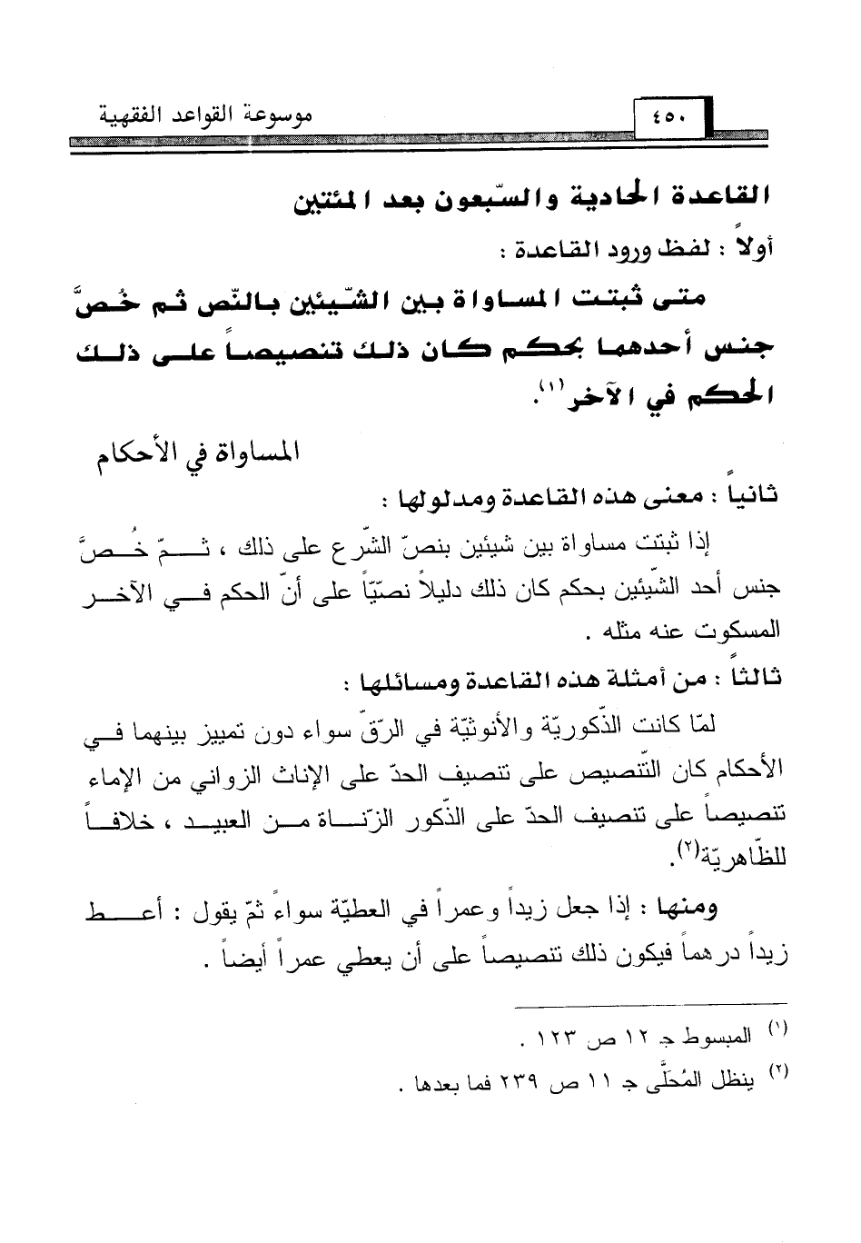 القاعدة الحادية والسّبعون بعد المئتين [المساواة في الأحكام]