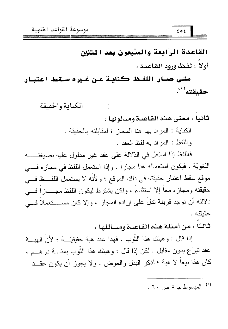 القاعدة الرّابعة والسّبعون بعد المئتين [الكناية والحقيقة]