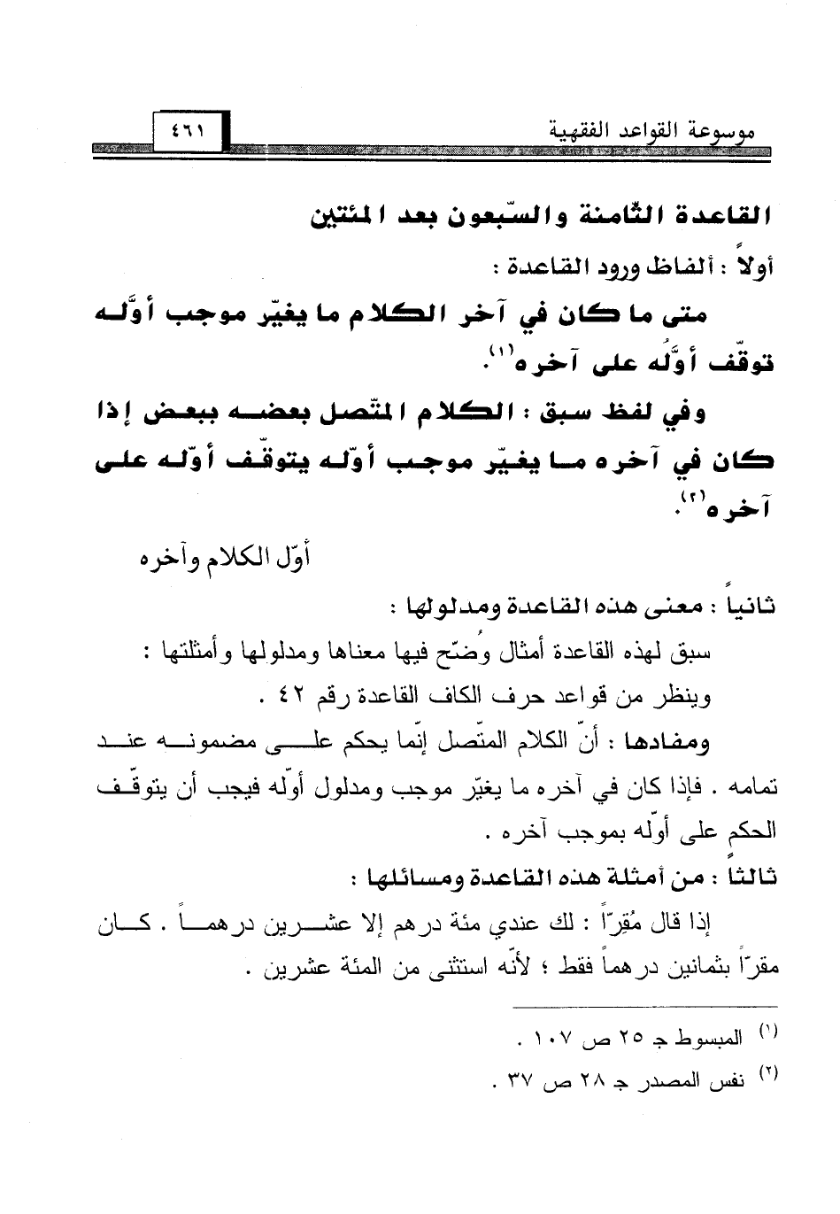 القاعدة الثّامنة والسّبعون بعد المئتين [أوّل الكلام وآخره]