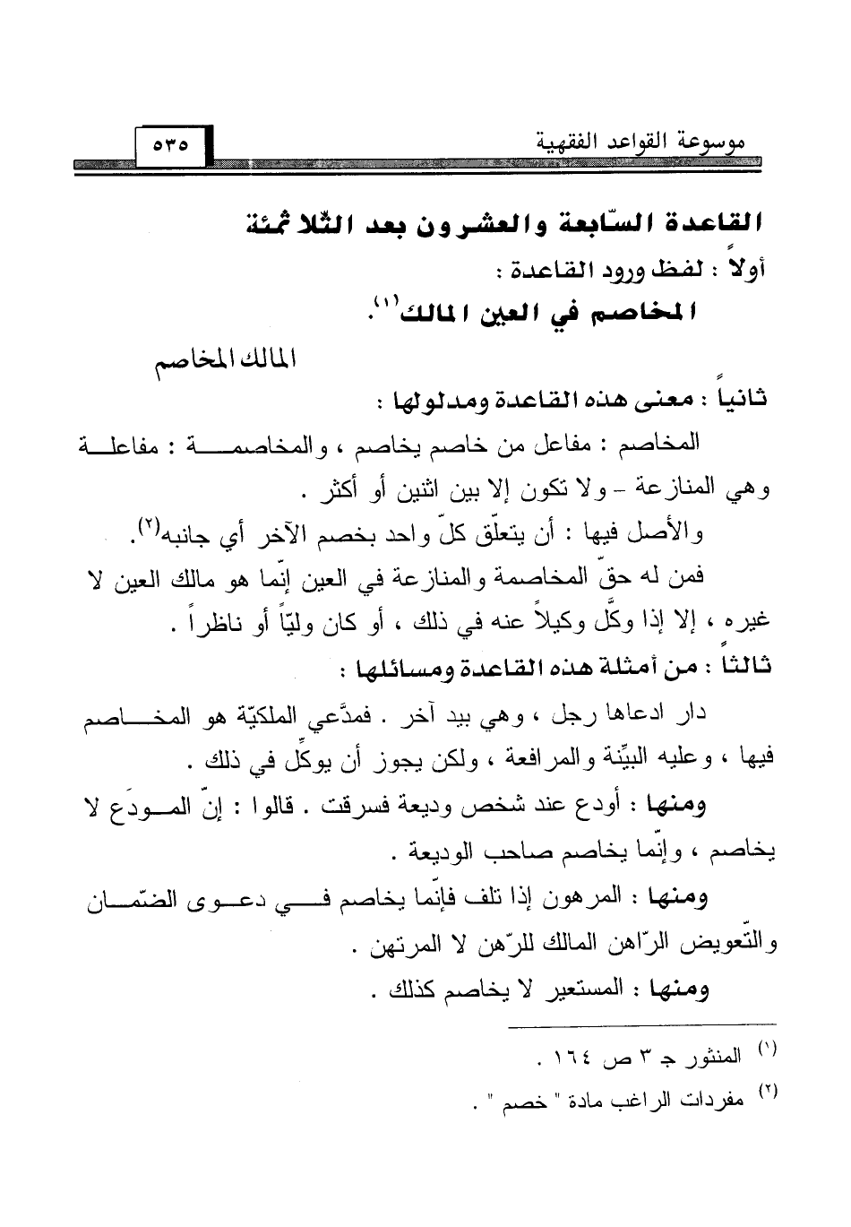 القاعدة السّابعة والعشرون بعد الثّلاثمئة [المالك المخاصم]