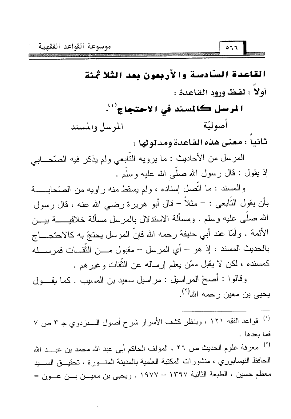 القاعدة السّادسة والأربعون بعد الثّلاثمئة [المرسل والمسند]