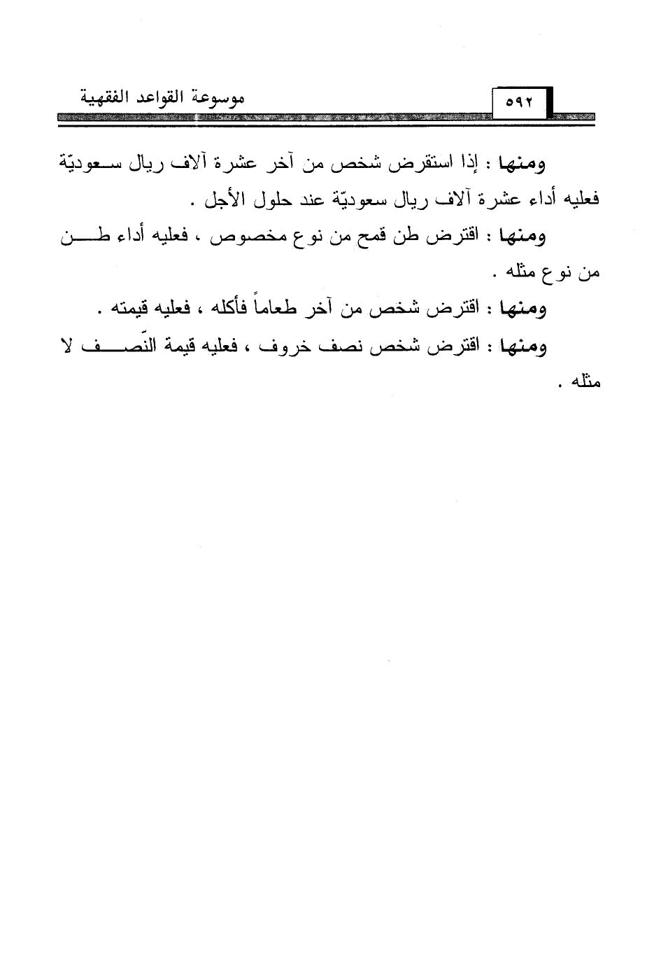 ومنها: إذا استقرض شخص من آخر عشرة آلاف ريال سعوديّة فعليه أداء عشرة آلاف ريال سعوديّة عند حلول الأجل.