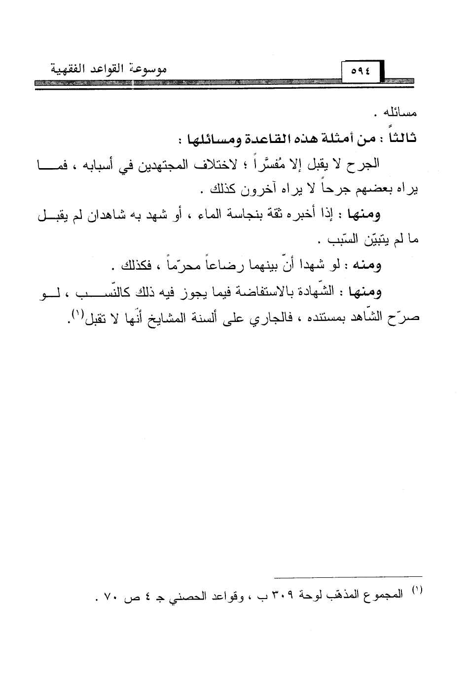 ثالثاً: من أمثلة هذه القاعدة ومسائلها: