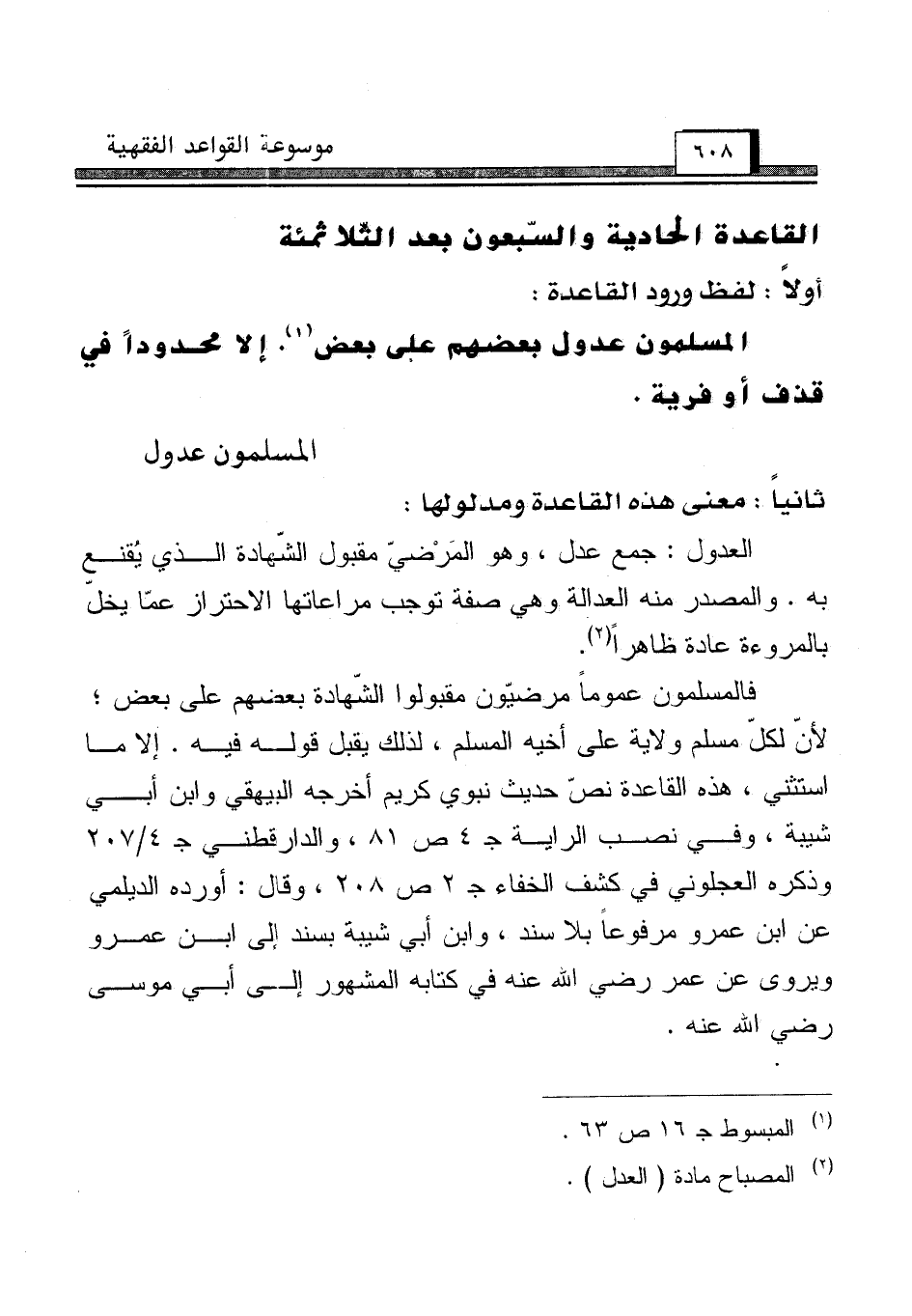 القاعدة الحادية والسّبعون بعد الثّلاثمئة [المسلمون عدول]
