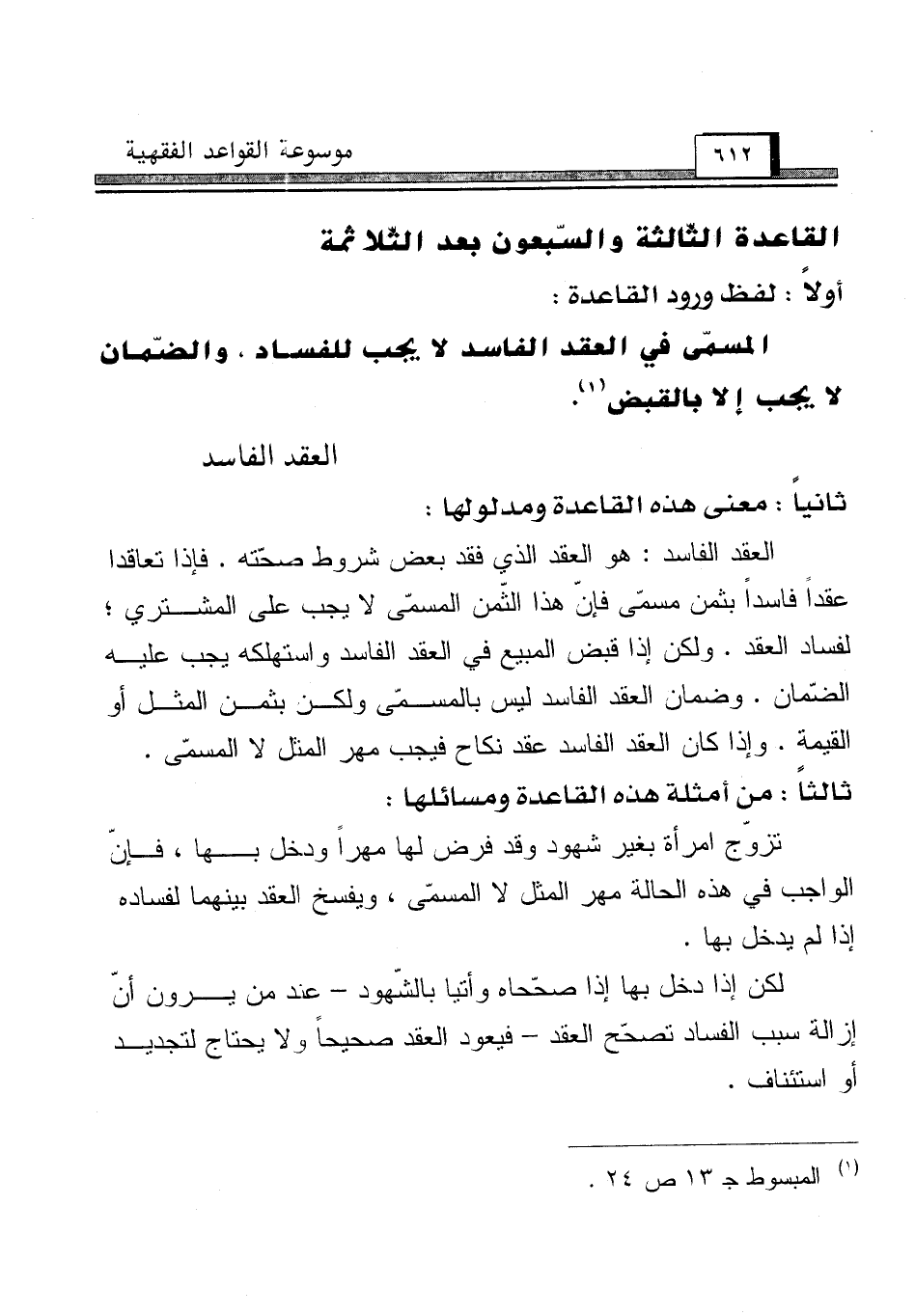 القاعدة الثّالثة والسّبعون بعد الثّلاثمئة [العقد الفاسد]