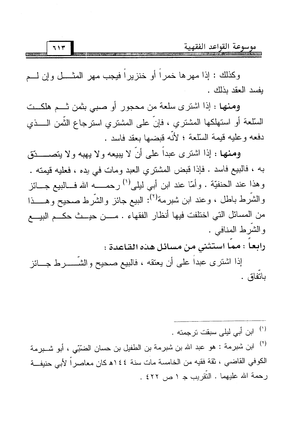 (¬2) ابن شبرمة: هو عبد الله بن شبرمة بن الطفيل بن حسان الضّبّي، أبو شبرمة الكوفي القاضي، ثقة فقيه من الخامسة مات سنة 144 هـ كان معاصراً لأبي حنيفة رحمة الله عليهما. التّقريب جـ 1 ص 422.