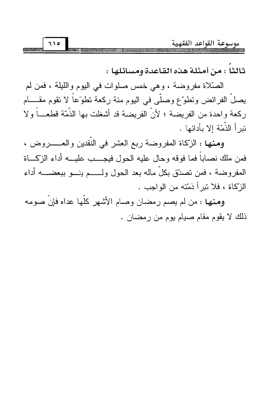 ثالثاً: من أمثلة هذه القاعدة ومسائلها: