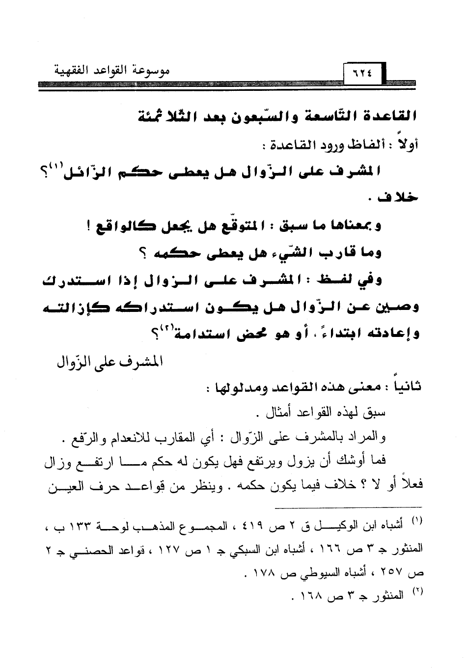 (¬1) أشباه ابن الوكيل ق 2 ص 419، المجموع المذهب لوحة 133 ب، المنثور جـ 3 ص 166، أشباه ابن السبكي جـ 1 ص 127، قواعد الحصني جـ 2 ص 257، أشباه السيوطي ص 178.