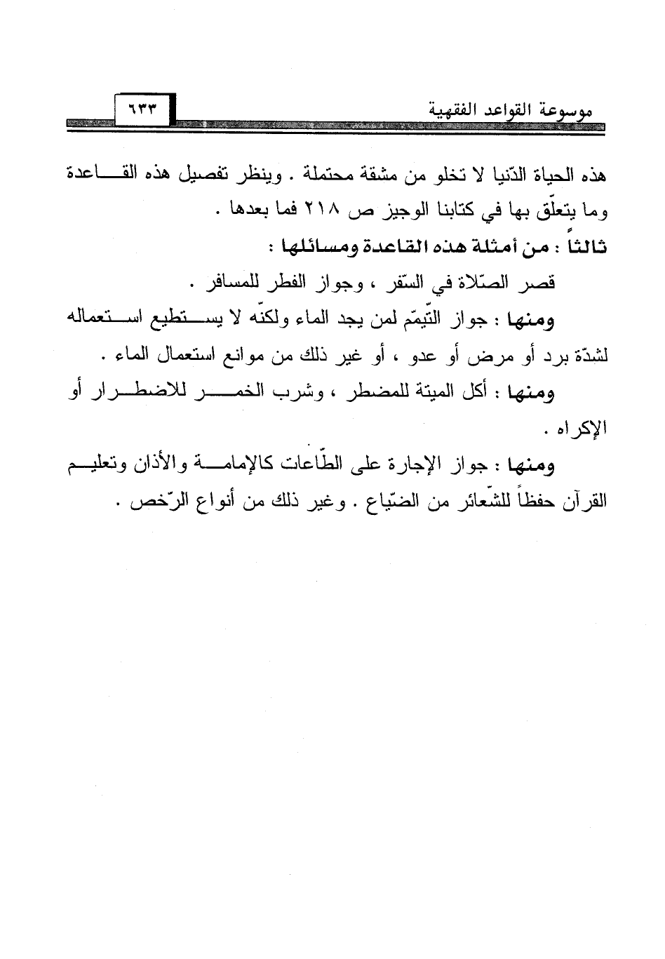 هذه الحياة الدّنيا لا تخلو من مشقة محتملة. وينظر تفصيل هذه القاعدة وما يتعلّق بها في كتابنا الوجيز ص 218 فما بعدها.