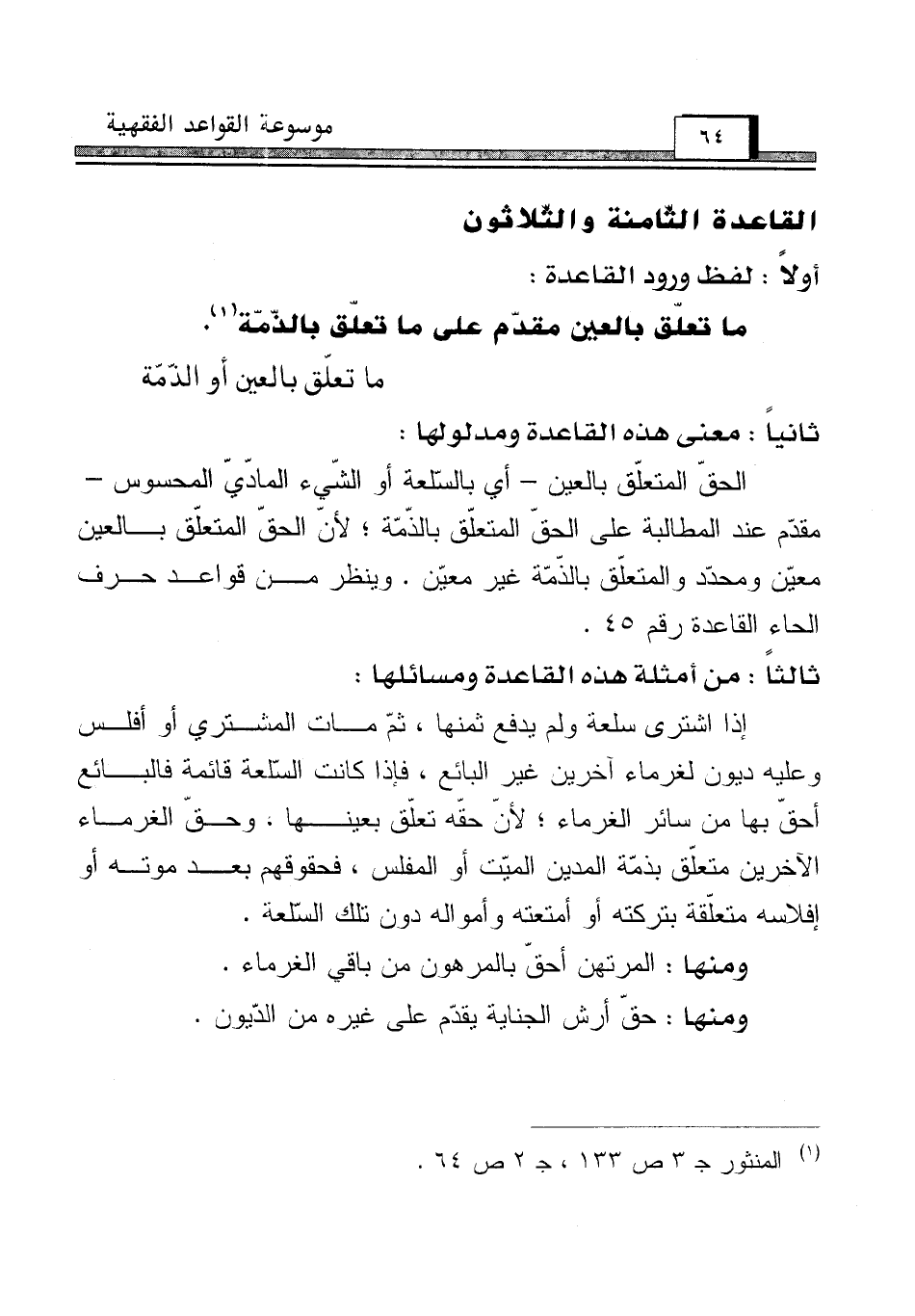القاعدة الثّامنة والثّلاثون [ما تعلّق بالعين أو الذّمّة]