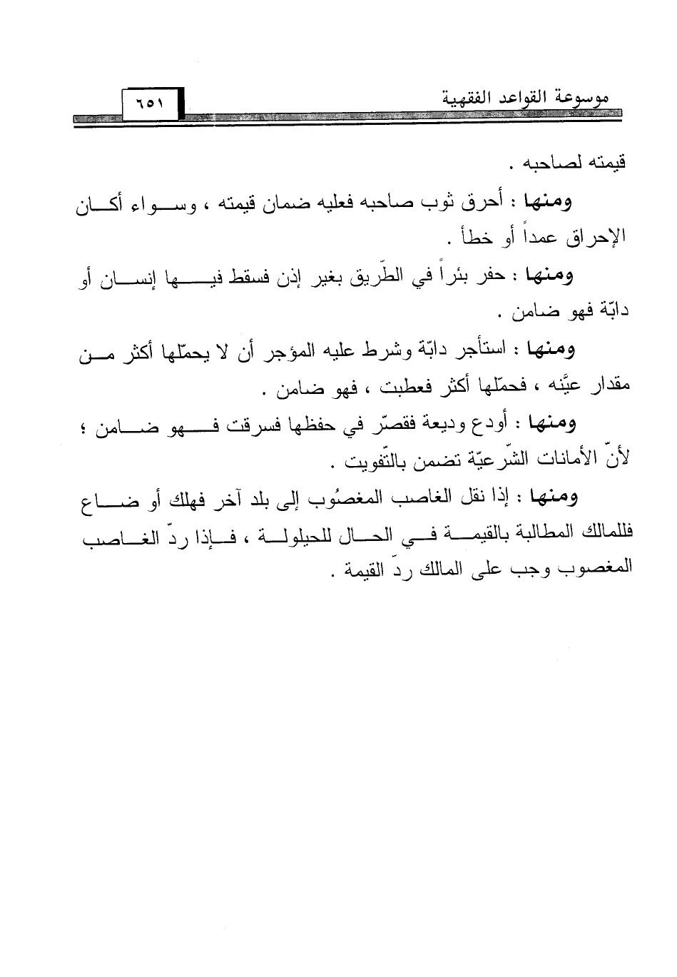 ومنها: أحرق ثوب صاحبه فعليه ضمان قيمته، وسواء أكان الإحراق عمداً أو خطأ.