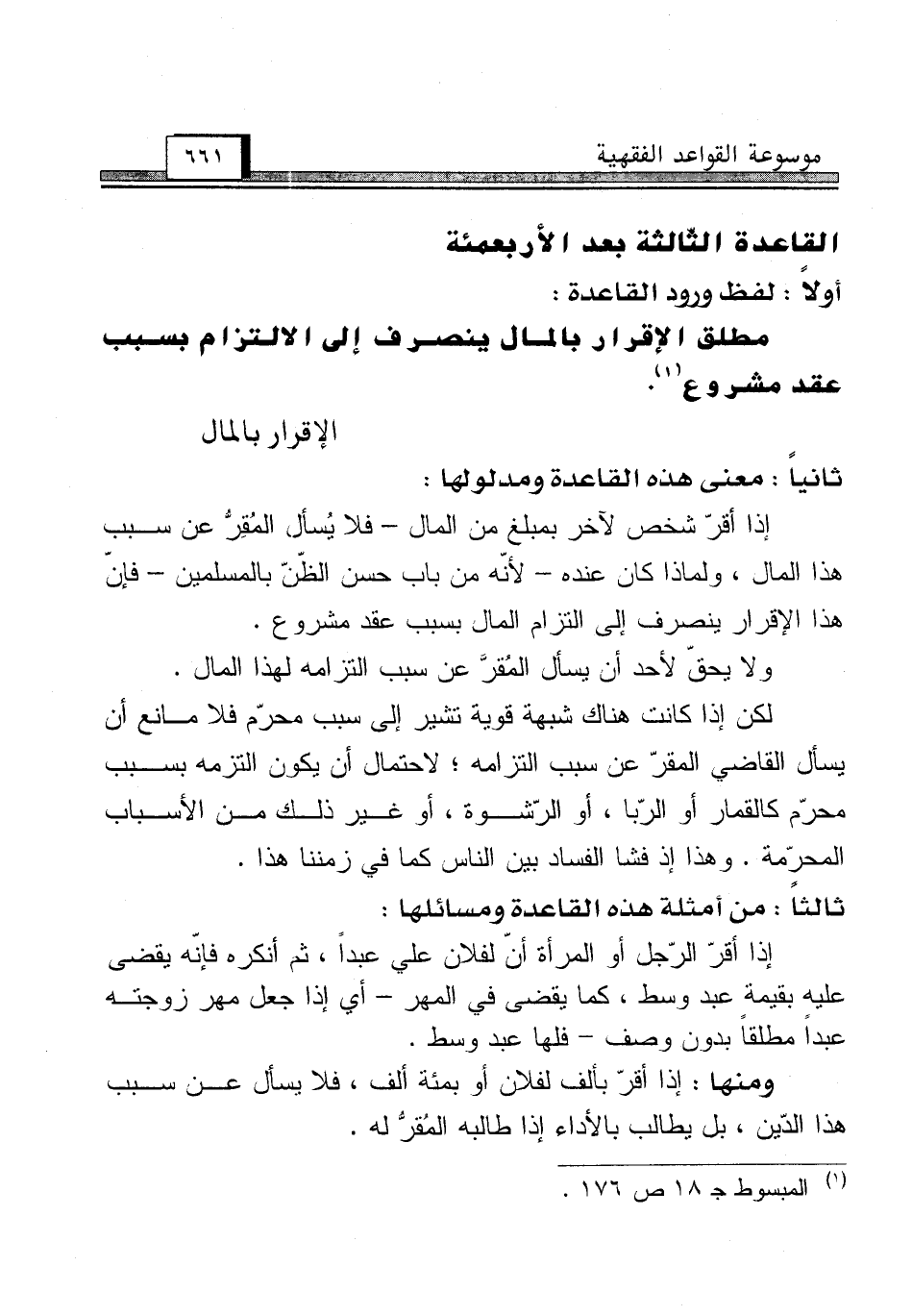 القاعدة الثّالثة بعد الأربعمئة [الإقرار بالمال]