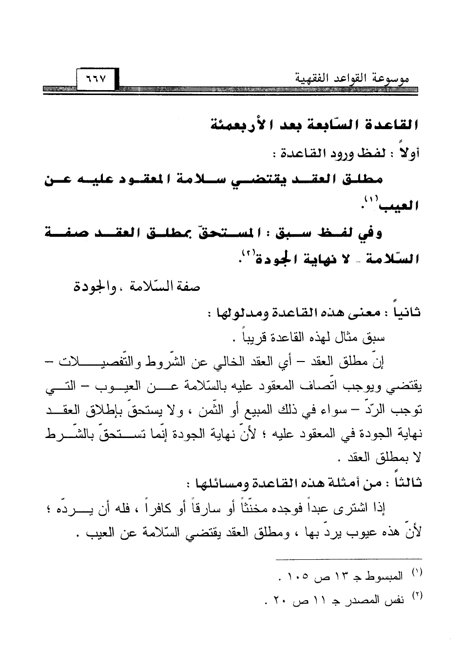 القاعدة السّابعة بعد الأربعمئة [صفة السّلامة، والجودة]