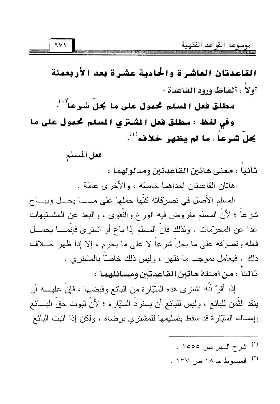القاعدتان العاشرة والحادية عشرة بعد الأربعمئة [فعل المسلم]