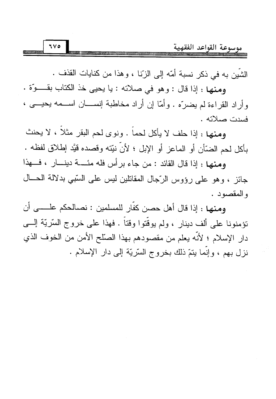 ومنها: إذا حلف لا يأكل لحماً. ونوى لحم البقر مثلاً، لا يحنث بأكل لحم الضّأن أو الماعز أو الإبل؛ لأنّ نيّته وقصده قيَّد إطلاق لفظه.
