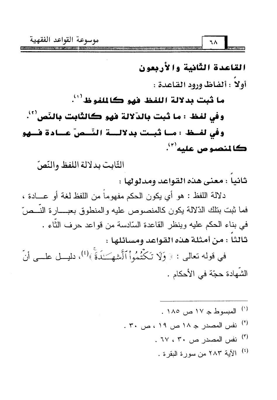 القاعدة الثّانية والأربعون [الثّابت بدلالة اللفظ والنّصّ]