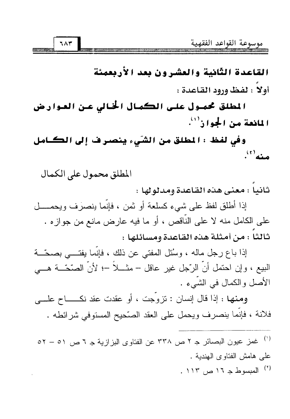 القاعدة الثّانية والعشرون بعد الأربعمئة [المطلق محمول على الكمال]