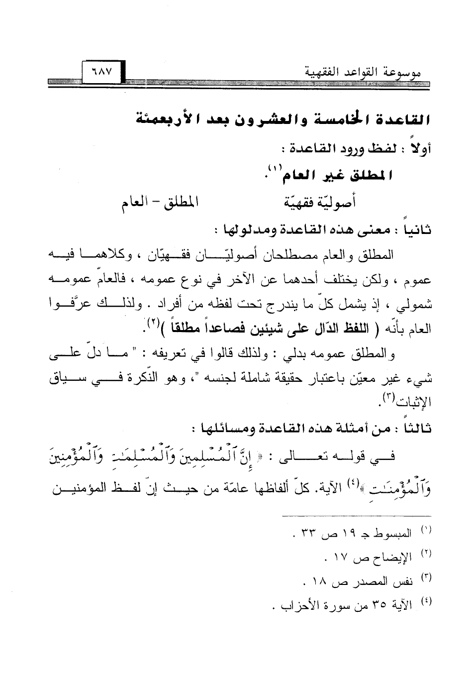 القاعدة الخامسة والعشرون بعد الأربعمئة [المطلق - العام]