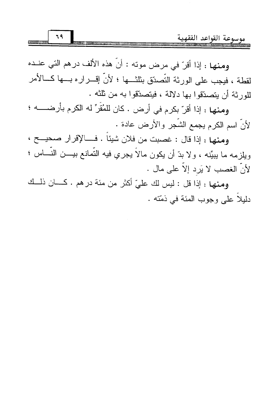 ومنها: إذا أقرّ في مرض موته: أنّ هذه الألف درهم التي عنده لقطة، فيجب على الورثة التّصدّق بتلثها؛ لأنّ إقراره بها كالأمر للورثة أن يتصدّقوا بها دلالة، فيتصدّقوا به من ثلثه.