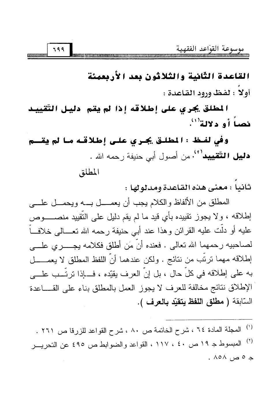القاعدة الثّانية والثلاثون بعد الأربعمئة [المطلق]