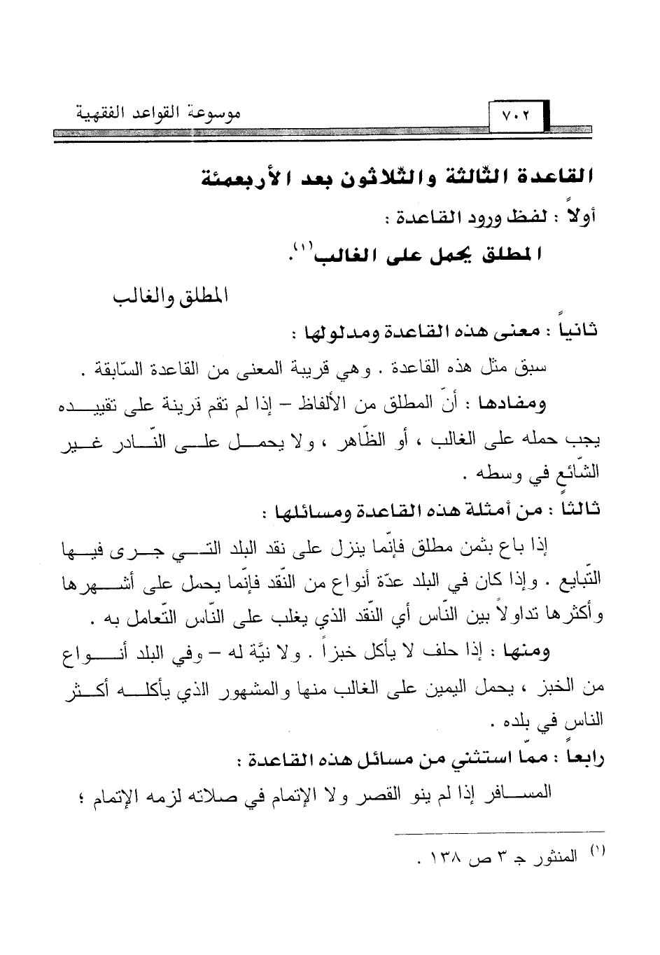 القاعدة الثّالثة والثّلاثون بعد الأربعمئة [المطلق والغالب]