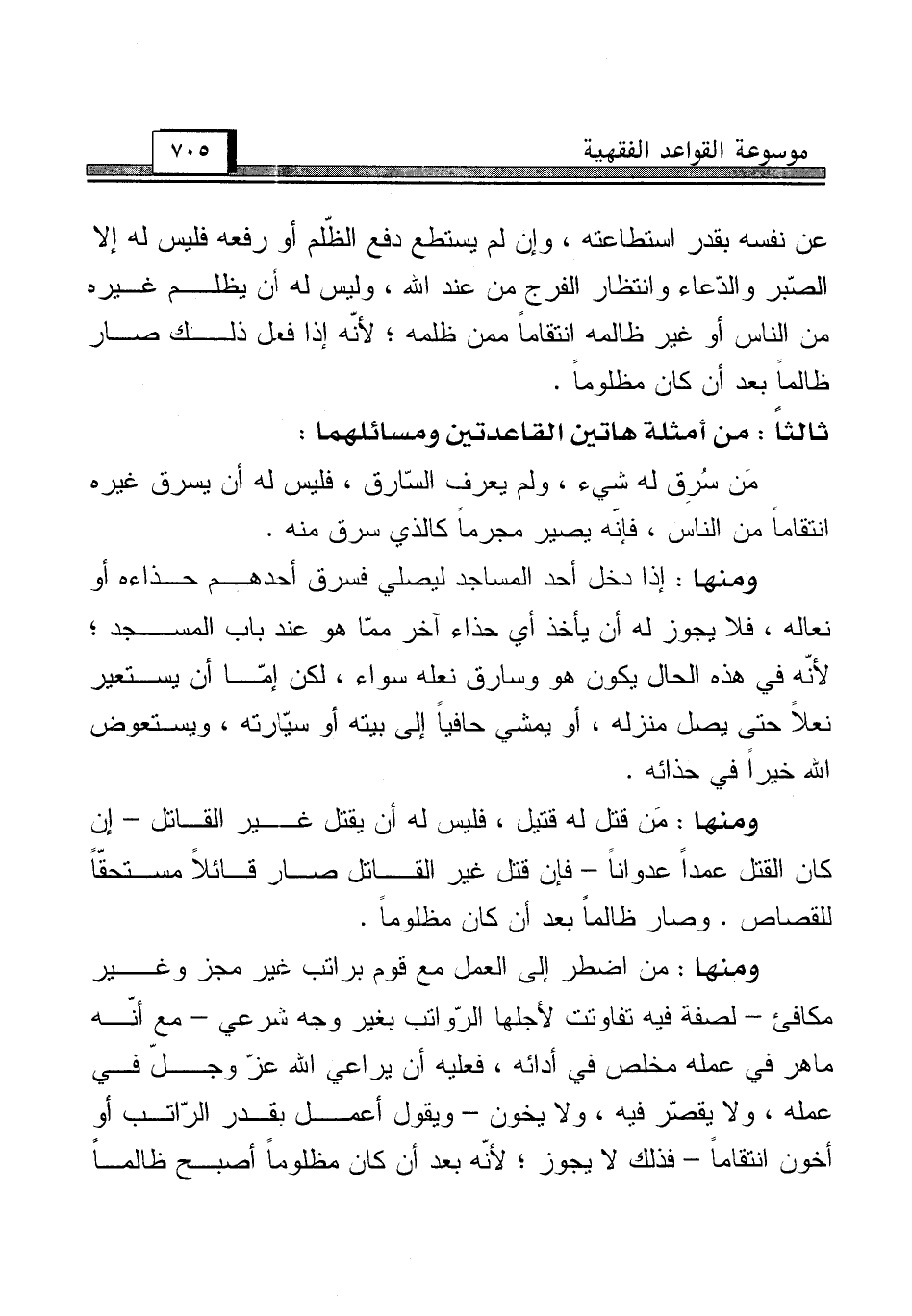 عن نفسه بقدر استطاعته، وإن لم يستطع دفع الظّلم أو رفعه فليس له إلا الصّبر والدّعاء وانتظار الفرج من عند الله، وليس له أن يظلم غيره من الناس أو غير ظالمه انتقاماً ممن ظلمه؛ لأنّه إذا فعل ذلك صار ظالماً بعد أن كان مظلوماً.