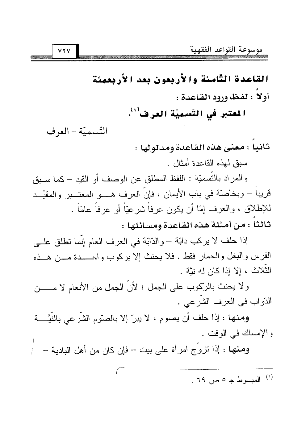 القاعدة الثّامنة والأربعون بعد الأربعمئة [التّسميّة - العرف]