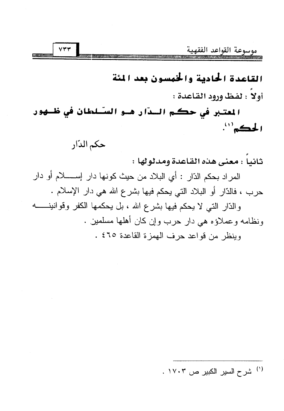 القاعدة الحادية والخمسون بعد المئة [حكم الدّار]