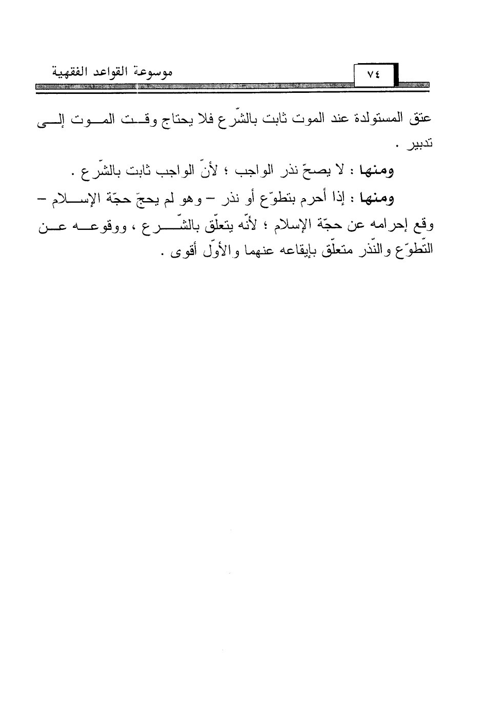 ومنها: لا يصحّ نذر الواجب؛ لأنّ الواجب ثابت بالشّرع.