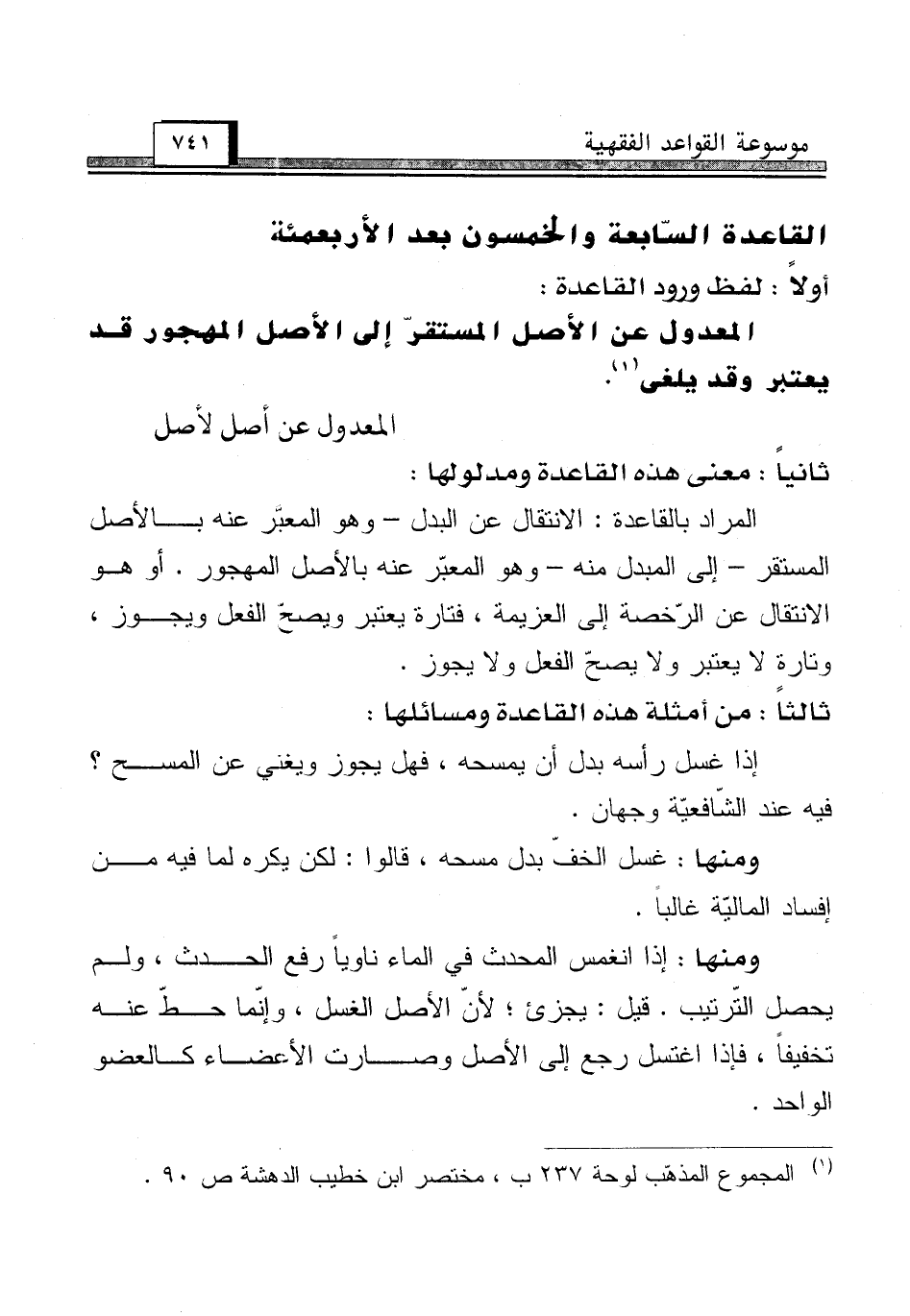 القاعدة السّابعة والخمسون بعد الأربعمئة [المعدول عن أصل لأصل]