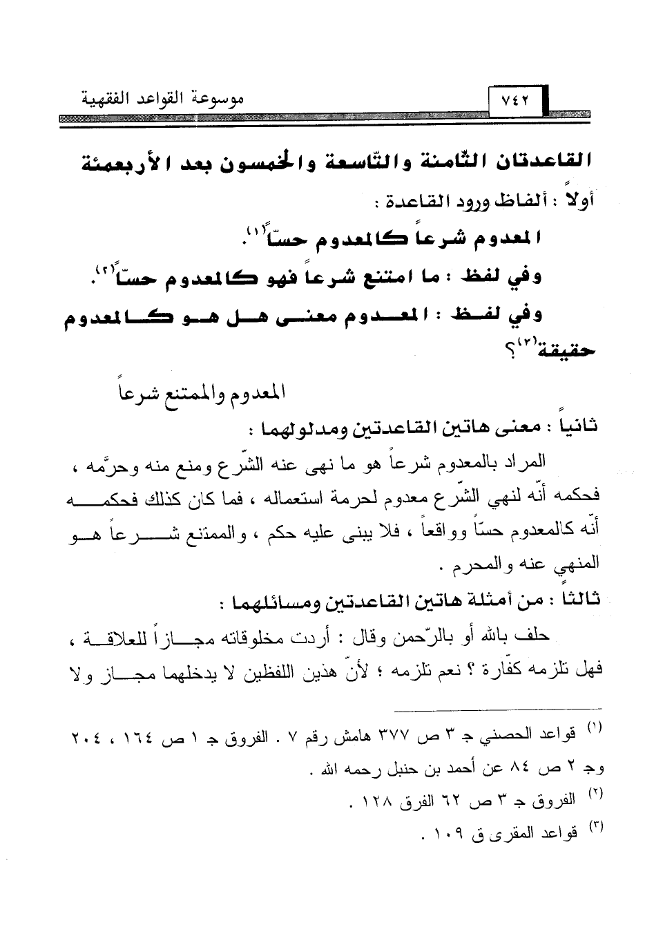 (¬1) قواعد الحصني جـ 3 ص 377 هامش رقم 7.الفروق جـ 1 ص 164، 204 وجـ 2 ص 84 عن أحمد بن حنبل رحمه الله.