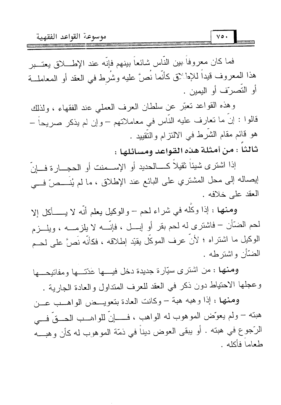 ثالثاً: من أمثلة هذه القواعد ومسائلها: