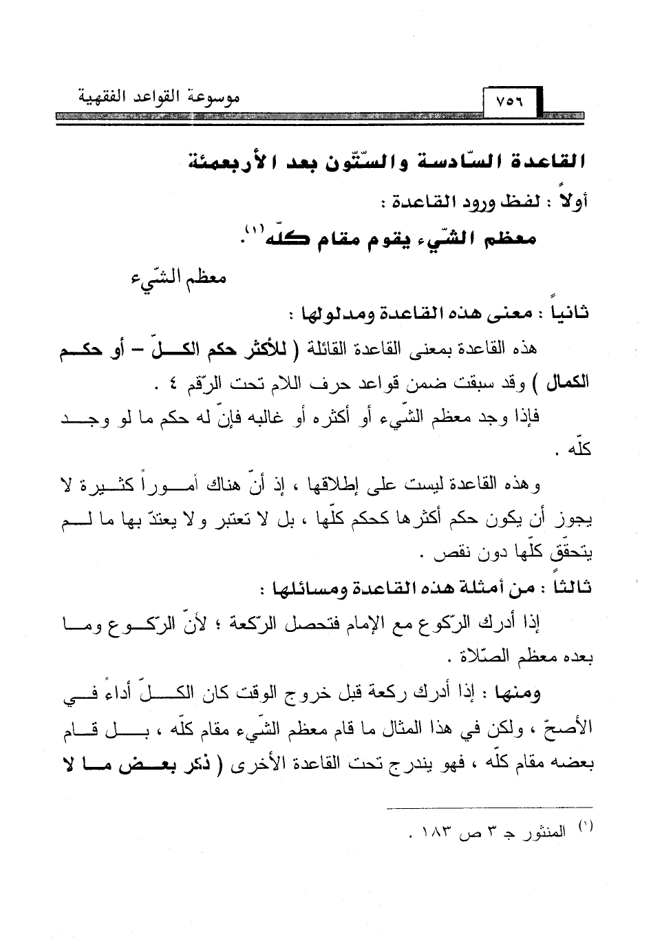 القاعدة السّادسة والسّتّون بعد الأربعمئة [معظم الشّيء]