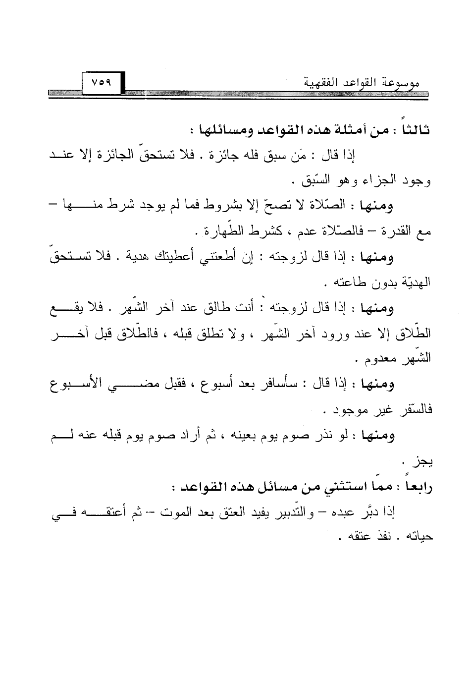ثالثاً: من أمثلة هذه القواعد ومسائلها: