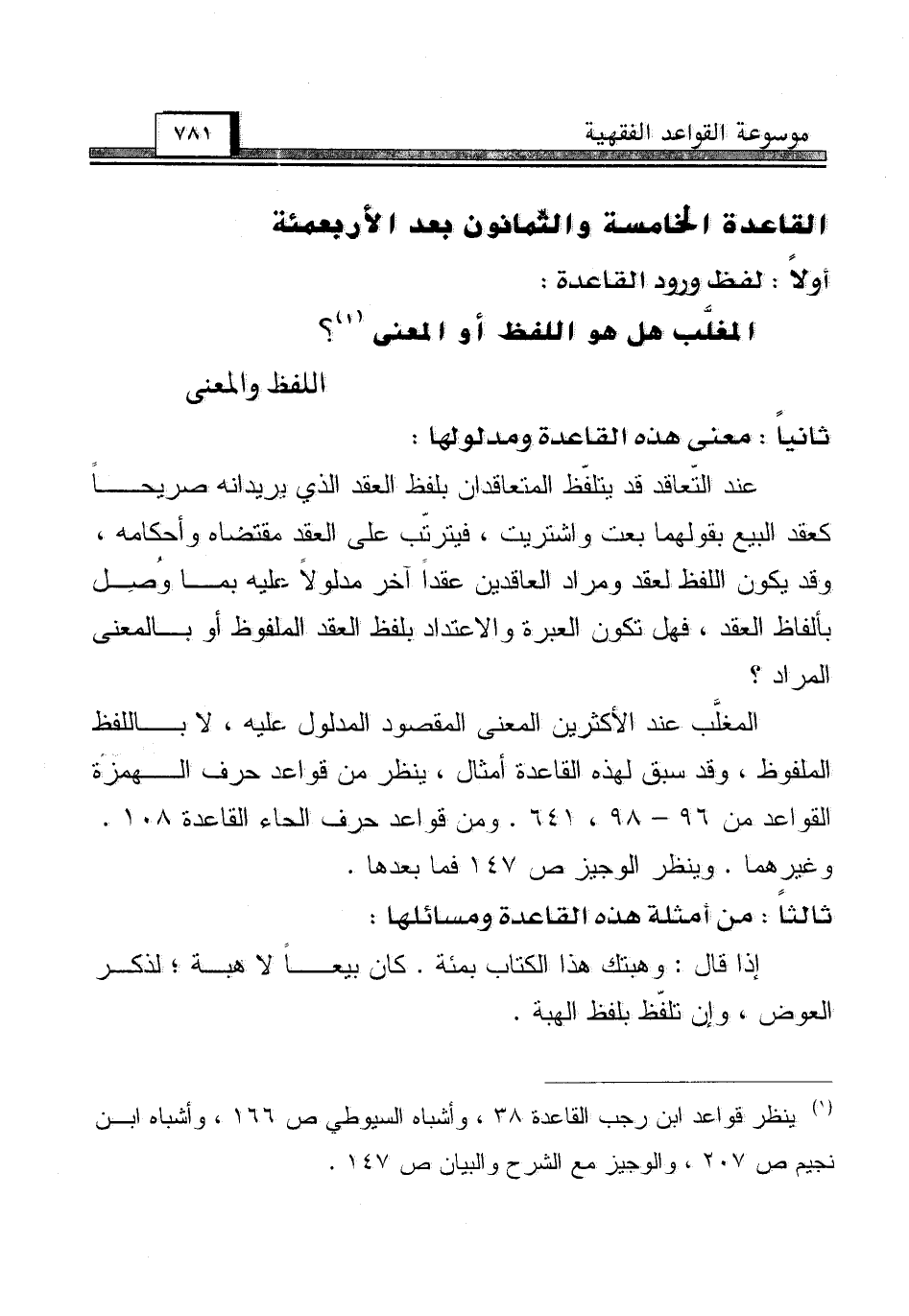 (¬1) ينظر قواعد ابن رجب القاعدة 38، وأشباه السيوطي ص 166، وأشباه ابن نجيم ص 207، والوجيز مع الشرح والبيان ص 147.