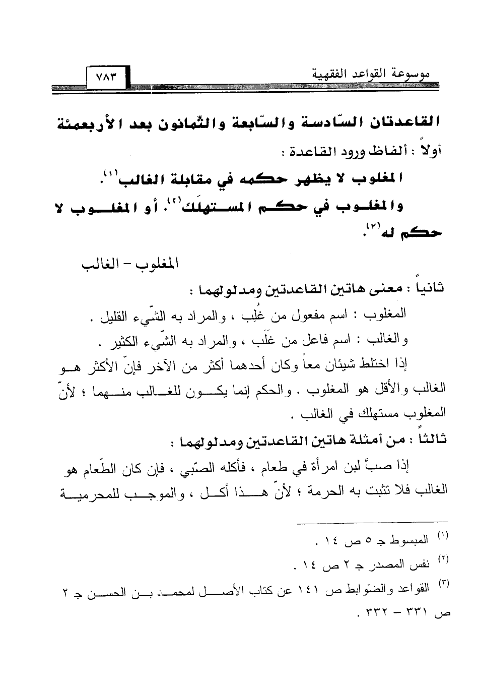 (¬3) القواعد والضّوابط ص 141 عن كتاب الأصل لمحمد بن الحسن جـ 2 ص 331 - 332.
