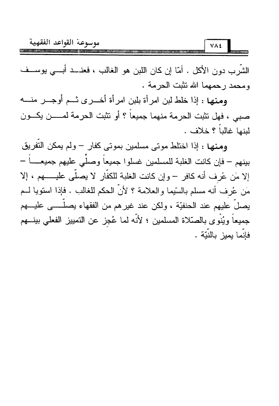 ومنها: إذا خلط لبن امرأة بلبن امرأة أخرى ثم أوجر منه صبي، فهل تثبت الحرمة منهما جميعاً؟ أو تثبت الحرمة لمن يكون لبنها غالباً؟ خلاف.