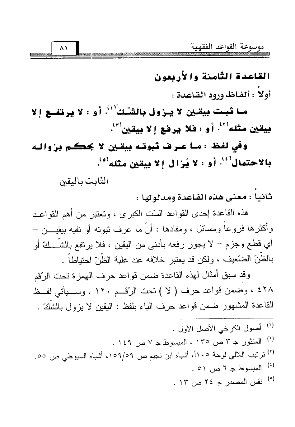 القاعدة الثّامنة والأربعون [الثّابت باليقين]