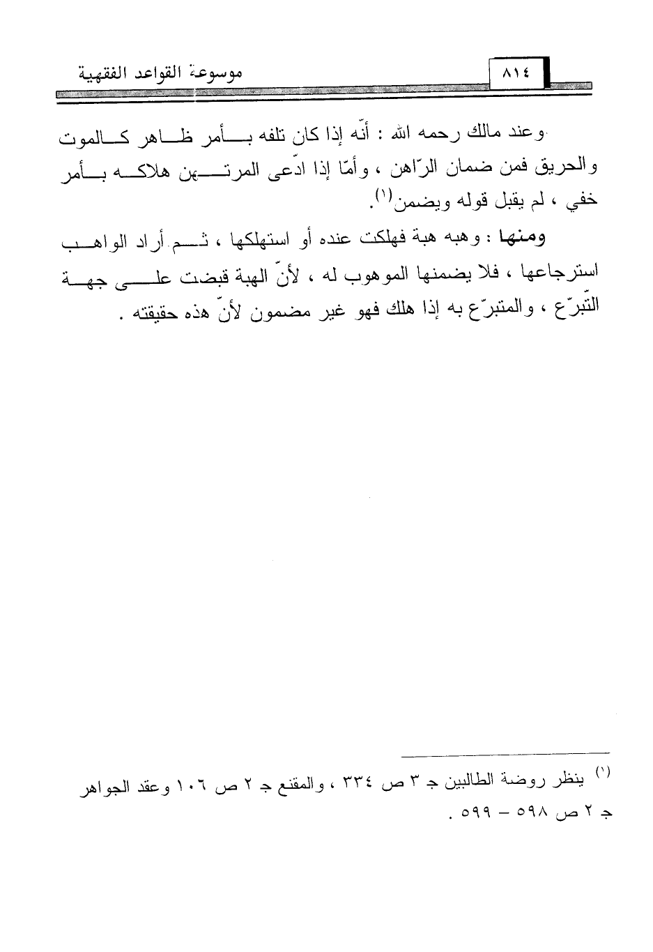 (¬1) ينظر روضة الطالبين جـ 3 ص 334، والمقنع جـ 2 ص 106 وعقد الجواهر جـ 2 ص 598 - 599.