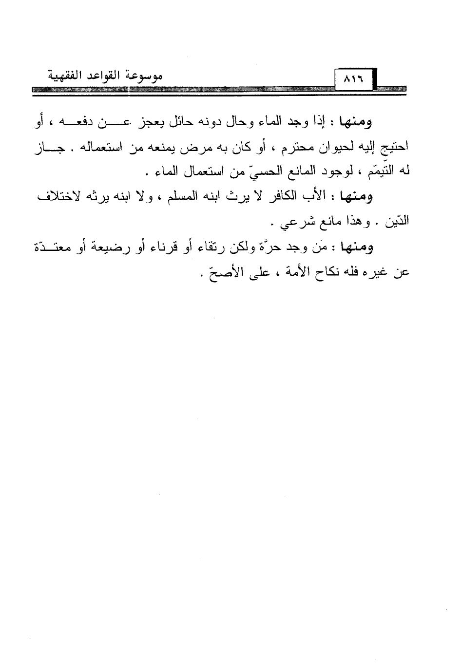 ومنها: الأب الكافر لا يرث ابنه المسلم، ولا ابنه يرثه لاختلاف الدّين. وهذا مانع شرعي.